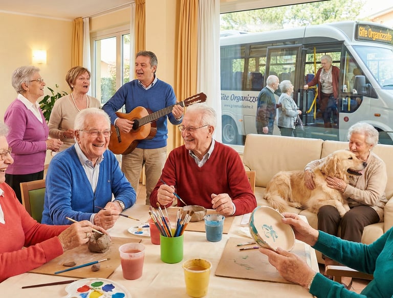 Laboratori manuali, musica, pet therapy e uscite organizzate per favorire la socializzazione.